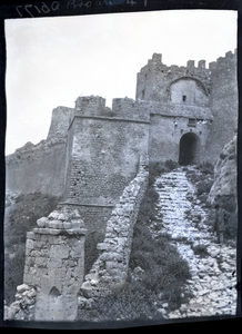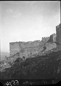 Part of a group of images donated by the Argonaut Camera Club, taken on excursions and cruises in Greece and Asia Minor. The original description in the SPHS register reads: "Corinth: Acrocorinth, Medieval fortifications".
