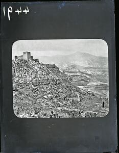 Part of a group of images donated by the Argonaut Camera Club, taken on excursions and cruises in Greece and Asia Minor. The original description in the SPHS register reads: "Corinth: Acropolis, Venetian fortification". The entry has been struck out in the SPHS register, presumably deaccessioned.