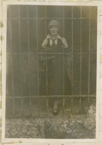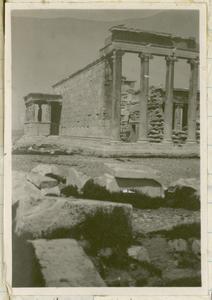 Photographers shadow in the foreground, another figure standing by Caryatids.