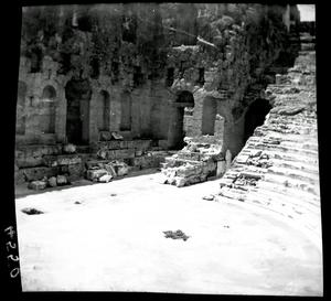 The original description in the SPHS register reads: "Athens: Acropolis. Odeion of Herodes. Interior stage buildings looking W".