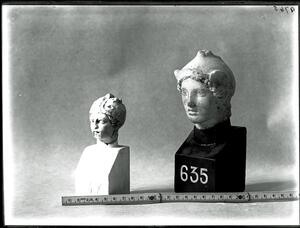 Although the original description in the SPHS register reads: "Acrop. Mus.: heads, Nos, 635, 647 (terra cotta)", these heads are made of marble. See p. 114 in The Acropolis Museum :. a descriptive catalogue / Maria S. Brouskari [Translated by Judith Binder]. Athens : Commercial Bank of Greece, 1974.
