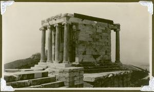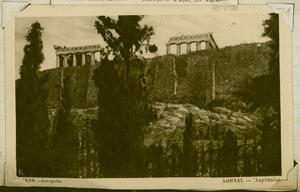 Includes the Temple of Athena Nike in the foreground, and view over countryside [which is now covered in buildings].
