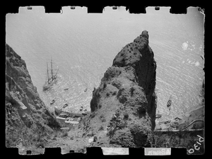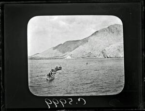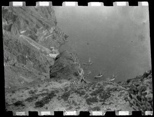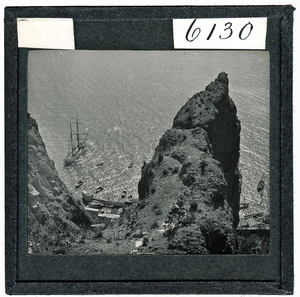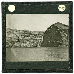 Part of a group of images donated by the Argonaut Camera Club, taken on excursions and cruises in Greece and Asia Minor. The original description in the SPHS register reads: "Thera: view of sea from above". The slide has been cropped on all sides from the negative.