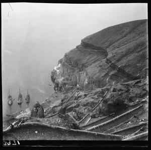 Part of a group of images donated by the Argonaut Camera Club, taken on excursions and cruises in Greece and Asia Minor. The original description in the SPHS register reads: "Thera: view of sea from above".