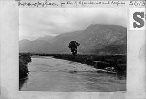 Part of a group of images donated by the Argonaut Camera Club, taken on excursions and cruises in Greece and Asia Minor. The original description in the SPHS register reads: "Thermopylae: junction of Spercheios & Asopus".