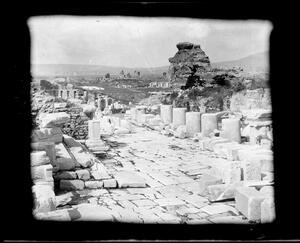 Part of a collection of images photographed by Corporal Trotman around the area of Ephesus and the Seven Cities of Asia Minor, taken between 1871-1873. The original description in the SPHS register reads: "Ephesus: from Temple of Diana, afterwards excavated".