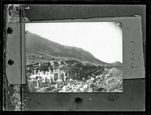 Part of a group of images donated by the Argonaut Camera Club, taken on excursions and cruises in Greece and Asia Minor. The original description in the SPHS register reads: "Ephesus: general view from theatre".