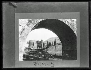 Part of a collection of images from the travel and research by Hasluck in Mysia and Bithynia. The original description in the SPHS register reads: "Pergamon: Roman bridge in lower town".