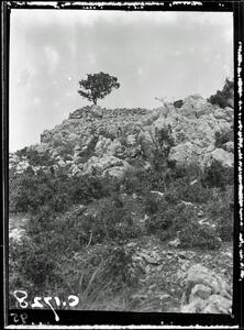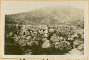 Part of a collection of images of the BSA's 1920s excavations at Mycenae. The original description in the SPHS negative register reads: "Mycenae, H Elias summit, Mycenaean wall N.E. slope". Recorded in the register as from the 1922 season.