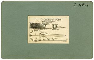 Part of a collection of images of the BSA's 1920s excavations at Mycenae. The original description in the SPHS negative register reads: "Mycenae: Cyclopean tomb, plans & sections". Recorded in the register as from the 1922 season.
