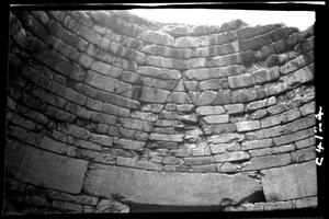 Part of a collection of images of the BSA's 1920s excavations at Mycenae. The original description in the SPHS negative register reads: "Mycenae, perfect tholos". Recorded in the register as from the 1922 season.