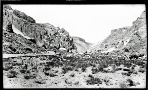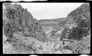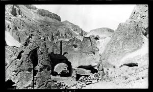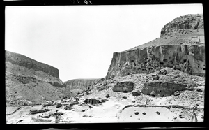 Part of a collection of images from Dawkins' travel to Cappadocia and Pharasa between 1909 and 1911. The original description in the SPHS register reads: "Rock cut dwellings of Soghanlu".