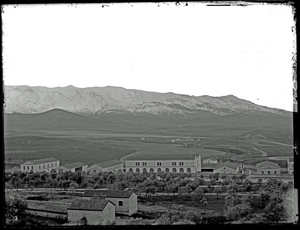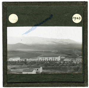 One of a group of images relating to the British School at Athens: buildings and setting, scholars and students. The original description in the SPHS register reads: "Athens: Mt. Pentelicus (winter) from near the British School".