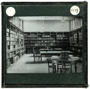One of a group of images relating to the British School at Athens: buildings and setting, scholars and students. The original description in the SPHS register reads: "B.S.A. Penrose mem. library interior".