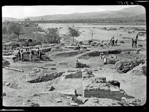 Part of the collection of images, 1906-1910, of the British School at Athens excavations at Sparta, Laconia. The original description in the SPHS register reads: "Sparta: Orthia, general view".