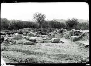 Part of the collection of images, 1906-1910, of the British School at Athens excavations at Sparta, Laconia. The original description in the SPHS register reads: "Sparta: the primitive temple ".