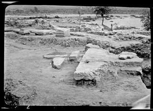 Part of the collection of images, 1906-1910, of the British School at Athens excavations at Sparta, Laconia. The original description in the SPHS register reads: "Sparta: Orthia, Roman bases".