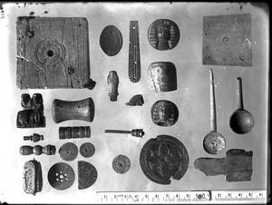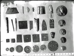 Part of the collection of images, 1906-1910, of the British School at Athens excavations at Sparta, Laconia. The original description in the SPHS register reads: "Sparta: miscellaneous ivories".