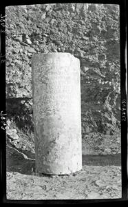 Part of the collection of images, 1906-1910, of the British School at Athens excavations at Sparta, Laconia. The original description in the SPHS register reads: "Bomonike inscription. Sparta 1910".