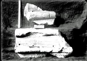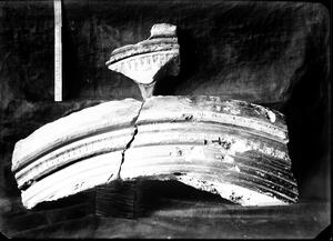 Part of the collection of images, 1906-1910, of the British School at Athens excavations at Sparta, Laconia. The original description in the SPHS register reads: "Sparta, Orthia Site 1906-10. Architectural terracottas: two pieces of ribbed roof tiles".