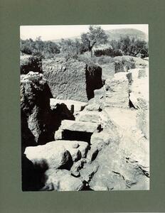 Part of the collection of images, 1906-1910, of the British School at Athens excavations at Sparta, Laconia. The original description in the SPHS register reads: "Sparta: Orthia, the drain looking W."