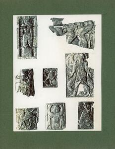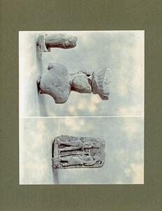 Part of the collection of images, 1906-1910, of the British School at Athens excavations at Sparta, Laconia. The original description in the SPHS register reads: "Sparta: Limestone relief and statuettes".