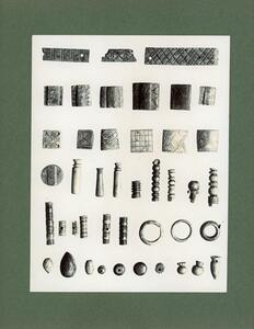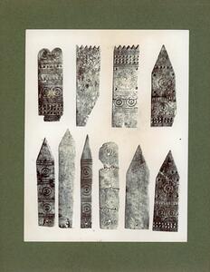 Part of the collection of images, 1906-1910, of the British School at Athens excavations at Sparta, Laconia. The original description in the SPHS register reads: "Sparta: ivories, fibula plaques".