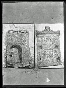 Part of the collection of images, 1906-1910, of the British School at Athens excavations at Sparta, Laconia. The original description in the SPHS register reads: "Sparta: Stelai from Artemision, dedication of sickles (prizes) for boy victors".
