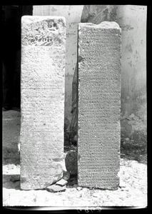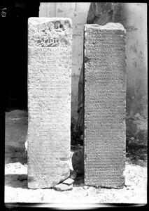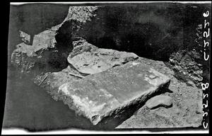 Part of the collection of images, 1906-1910, of the British School at Athens excavations at Sparta, Laconia. The original description in the SPHS register reads: "Sparta: Damonon inscription, both halves".