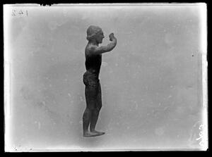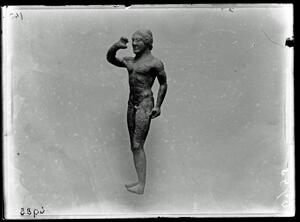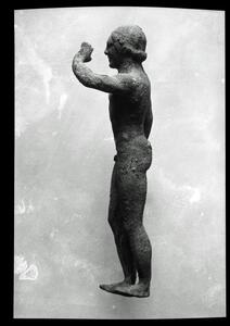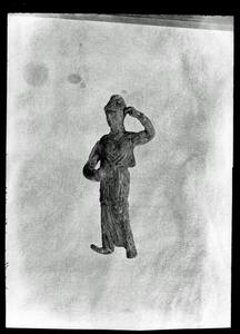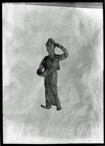 Part of the collection of images, 1906-1910, of the British School at Athens excavations at Sparta, Laconia. The original description in the SPHS register reads: "Bronze trumpeter from Sparta".