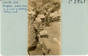 Part of the collection of images, 1924-1927, of the British School at Athens excavations at Sparta, Laconia. The original description in the SPHS register reads: "Sparta, 1924, sanctuary on acropolis".