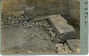 Part of the collection of images, 1924-1927, of the British School at Athens excavations at Sparta, Laconia. The original description in the SPHS register reads: "Sparta, 1924, acropolis, part of interior of Sanctuary with Poros blocks".