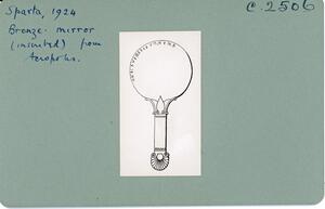 Part of the collection of images, 1924-1927, of the British School at Athens excavations at Sparta, Laconia. The original description in the SPHS register reads: "Sparta, 1924, mirror".