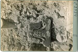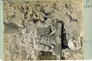 Part of the collection of images, 1924-1927, of the British School at Athens excavations at Sparta, Laconia. The original description in the SPHS register reads: "Sparta, 1925. Acropolis. Corinthian capital found in Byzantine Church (less good [as C 2579])".