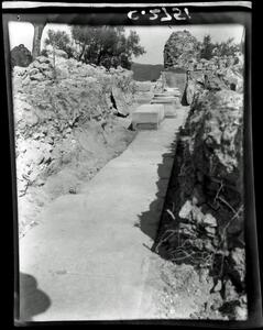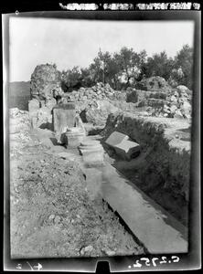 Part of the collection of images, 1924-1927, of the British School at Athens excavations at Sparta, Laconia. The original description in the SPHS register reads: "Sparta 1926, Byzantine Church Acropolis. N. Stylobate of nave, looking E".