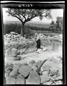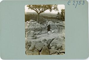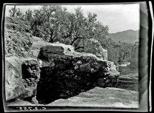 Part of the collection of images, 1924-1927, of the British School at Athens excavations at Sparta, Laconia. The original description in the SPHS register reads: "Sparta 1926, Byzantine Church Acropolis. Near S.E. corner, showing 'minaret'".