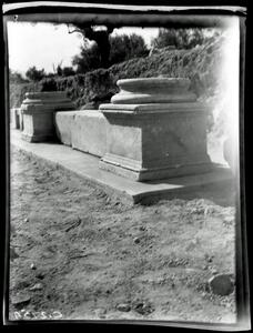Part of the collection of images, 1924-1927, of the British School at Athens excavations at Sparta, Laconia. The original description in the SPHS register reads: "Sparta 1926, Byzantine Church Acropolis. N. Stylobate of nave, 2 column bases, detail".