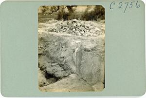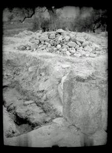 Part of the collection of images, 1924-1927, of the British School at Athens excavations at Sparta, Laconia. The original description in the SPHS register reads: "Sparta 1926, Byzantine Church Acropolis. N. Stylobate of nave, with later blocks removed".