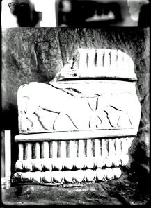 Part of the collection of images, 1924-1927, of the British School at Athens excavations at Sparta, Laconia. The original description in the SPHS register reads: "Sparta, Heroon. Moulded pithoi fragments; large fragment with winged horses".