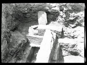 Part of the collection of images, 1906-1910, of the British School at Athens excavations at Sparta, Laconia. The original description in the SPHS register reads: "Sparta: Hellenistic tombs, double tomb".