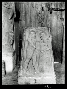 Part of the collection of images taken around the time of the compilation of the 1906 catalogue of the Sparta Museum conducted by M.N. Tod and A.J.B. Wace as members of the 1905-1910 the British School at Athens excavations at Sparta, Laconia. The original description in the SPHS register reads: "Sparta Mus. No. 1A. Archaic pyramidal stele, showing bearded man & woman".