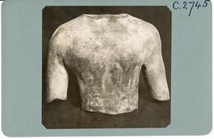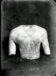 Part of the collection of images taken around the time of the compilation of the 1906 catalogue of the Sparta Museum conducted by M.N. Tod and A.J.B. Wace as members of the 1905-1910 the British School at Athens excavations at Sparta, Laconia. The original description in the SPHS register reads: "Sparta Mus. 513, 710 Male torso, dioscurus (?) Asclepius. Imperial period".