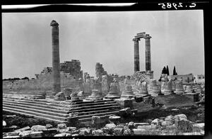 Part of a set of images from Hogarth's travel by yacht to the Satalian Gulf in 1904 as described in his 1910 book, Accidents of an Antiquary's Life. The original description in the SPHS register reads: "Didyma: Temple of Apollo, columns in facade".