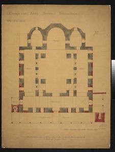 Ground plan showing Turkish work. The drawing is entitled:'Church of Saint Sophia Thessalonica', No1. 'The Plan'. Further annotation in ink survives. W.S. George (1906-1915/1907-1909?) has contributed to the drawings of this church.