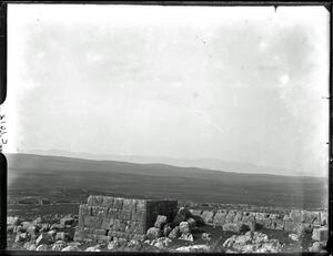 The original description in the SPHS register reads: "Mr. Atchley's numbering: 574. Boeotia, Plataea, tower and walls from S".