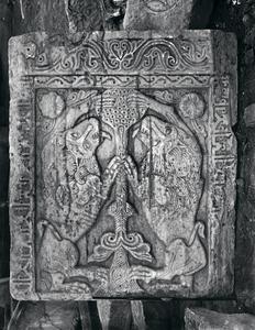 Heraldic relief closure slab (two lions eat from the tree of knowledge).Now in Byzantine Museum Athens. Further annotation in pencil survives at the back of the photograph.