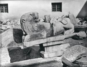 Lion, marble.Now in Byzantine Museum Athens. Further annotation in pencil survives at the back of the photograph.