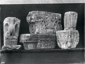 Marble relief capitals and dosserets. Now in Byzantine Museum Athens. Further annotation in pencil survives at the back of the photograph.