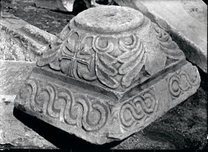 Capital with marble relief decoration. Now in Byzantine Museum Athens. Further annotation in pencil survives at the back of the photograph.
