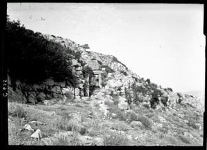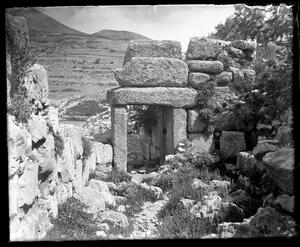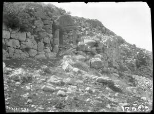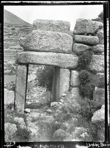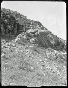 Part of a collection of images of the BSA's 1920s excavations at Mycenae. The original description in the SPHS negative register reads: "Mycenae, Acropolis postern from E".